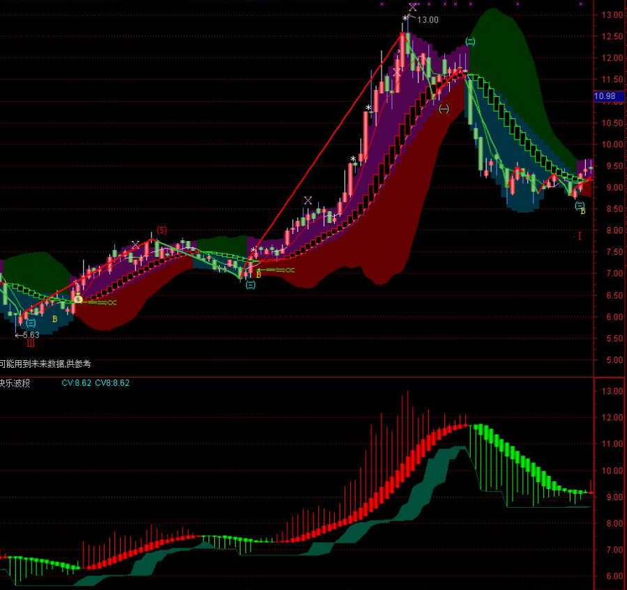 STICKLINE((A<=B),A,B,5.6,0),COLOR00BB00;