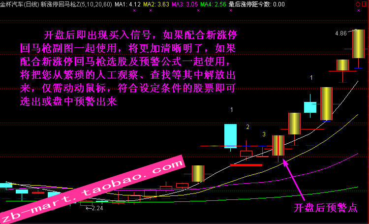 本指标需要引入到通达信股票软件中使用,本指标包括新的涨停回马枪主图、副图、分时主、副图和2个选股指标。原价1800元,我们推广价只售398元。推广结束后,立即恢复原价。
