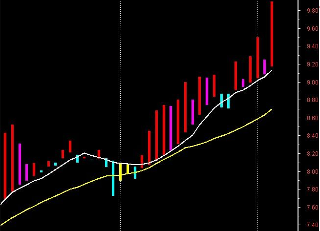 STICKLINE(C>M10 AND C<REF(C,1),C,M10,1,0)COLORMAGENTA;