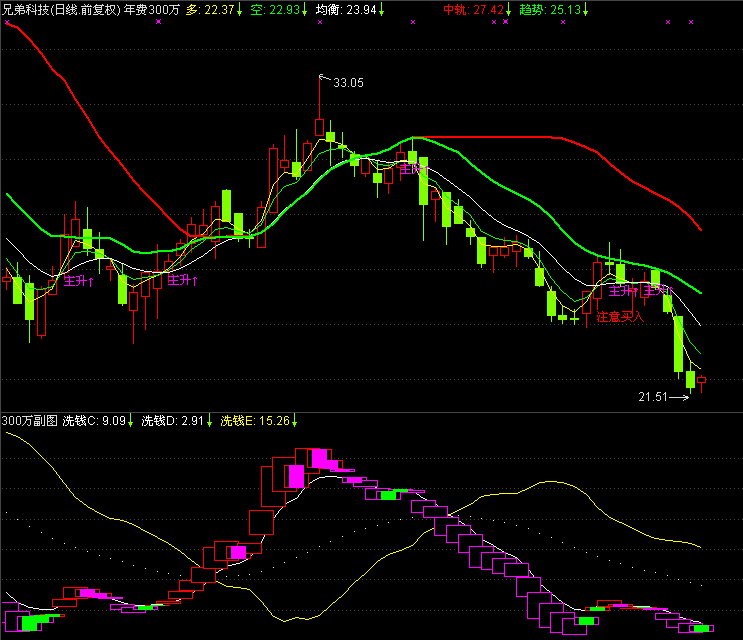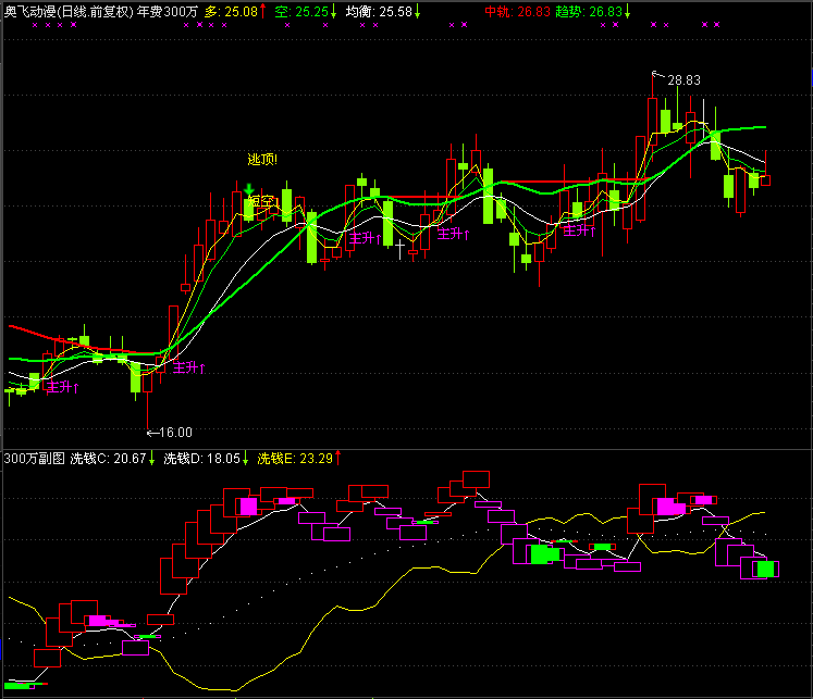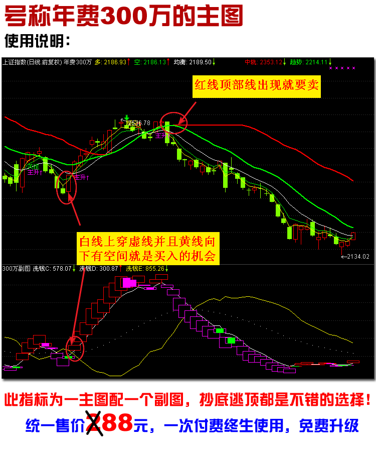 通达信股票软件/经典主图逃顶看底指标公式 号称价值300万