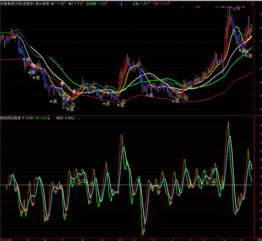 指标买卖有点类似乖离率指标,但却不同。理念就是股价围绕中心线上下波动,不管股价离开中心线多远,必然会出现回归。