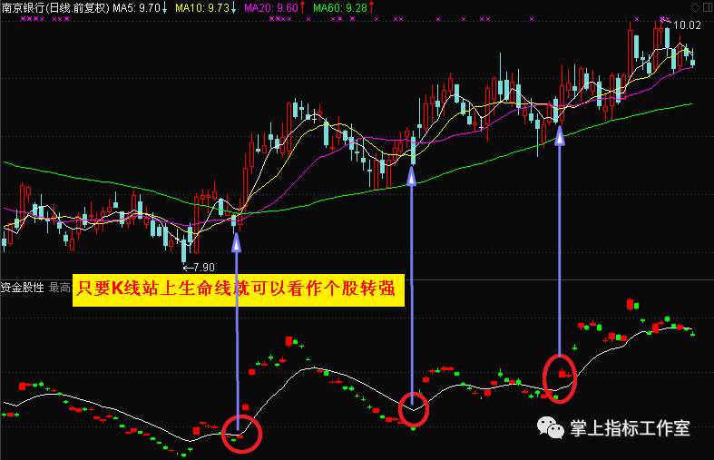 【黑马显现】副图指标,红色箭头突破位,突破后形成杯柄突破形态,确认资金进场!