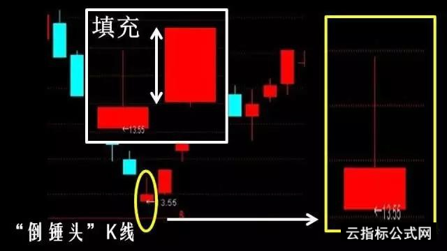 倒锤头K线倒锤头K线,上影线很长,实体很小,位于K线的下端。经常出现在下降跌势之后,是行情可能见底的信号。