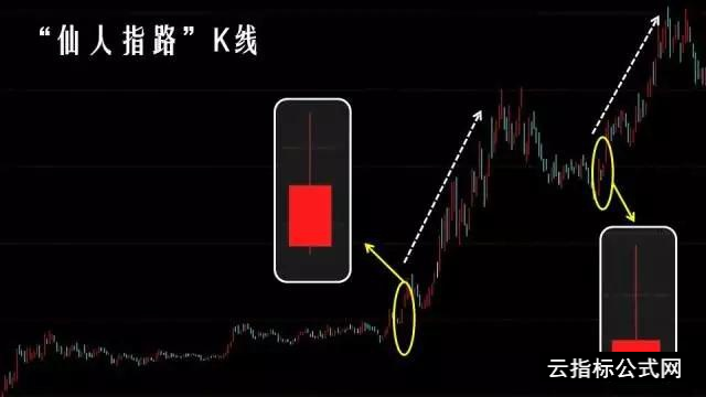 仙人指路K线仙人指路K线,外形上和倒锤头、射击之星基本类似,都是上影线很长,实体较短,下影线几乎没有。但是当这种K线结构出现在股价拉升阶段初期、上升波段中期或者大调整阶段的中期底部,就是典型的仙人指路特征。仙人指路指的就是主力在拉升个股之前,先打个前站,随后不久股价就会发力上攻,沿着仙人指路这根K线的上影线的方向开始运行,后市股价的涨势较为凶猛。简单说,仙人指路K线较多出现在股价大趋势上涨的过程中。