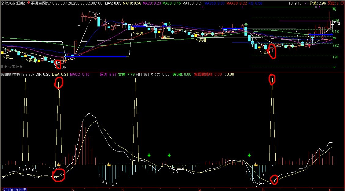 第四根绿柱:REF(MACD,1)<REF(MACD,2) AND REF(MACD,2)<REF(MACD,3) AND REF(MACD,3) <=0 AND MACD<=0 AND REF(MACD,4) >=0,COLORRED,NODRAW;