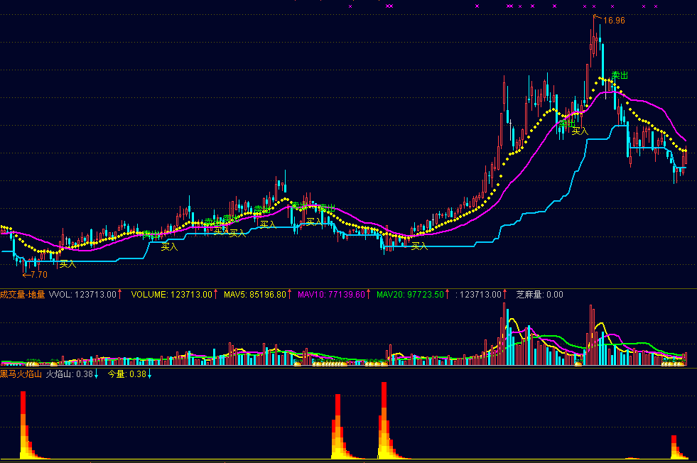 STICKLINE(火焰山>0,0,今量*0.2,8,0) COLOR00FFFF;