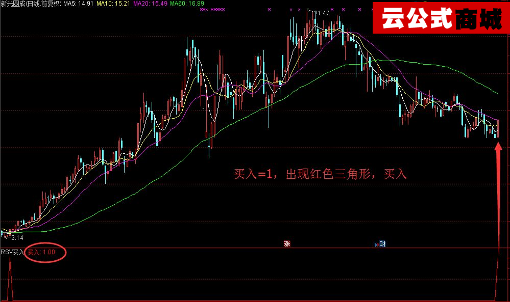 买入=1,出现红色三角形,买入。