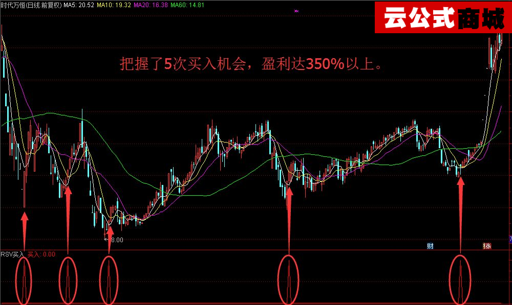 RSV是国际上比较流行的数字统计函数,RSV处于相对低位运行(即RSV值为20%以下)时,市场为超卖状况,RSV处于相对高位运行(即RSV值为80%以上)时,市场为超买状况。RSV买入指标的较大特点是用法简单明了,一看就会,运行流畅,没有未来函数。