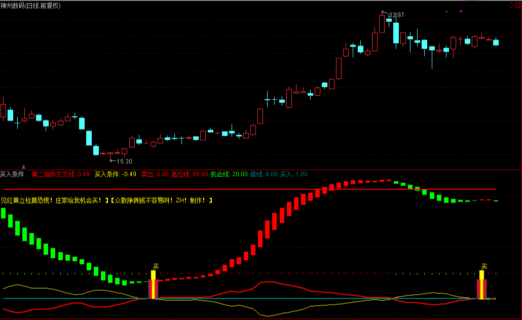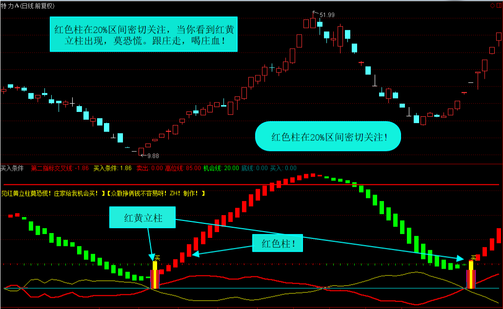 通达信精品系列-买入条件红色柱在20%区间关注莫恐慌,跟庄走。