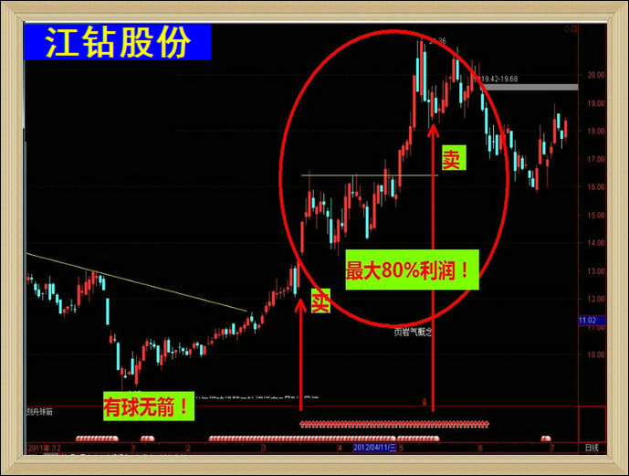 提示:指标不是万万能的,但是炒股没有指标是万万不能的!好指标可以让您享用一生!指标虽好,还需头脑清晰!希望您在使用本指标后利润能够迅速翻番或从中得到谋种启发,资金迅速增长。任何的获利都是由亏小赢大组成的,股市有风险,影响股价涨跌的因素很多,不能完全依赖软件和指标,公式中的买点信息仅供参考分析,一个出色的投资者应灵活百遍.若据此操作我们不承担任何投资风险,请结合多方面的分析适当介入!这款系统的在成功率80%左右.这在做决杀超短线的个股行情中,有这样的成功率是非常高的.