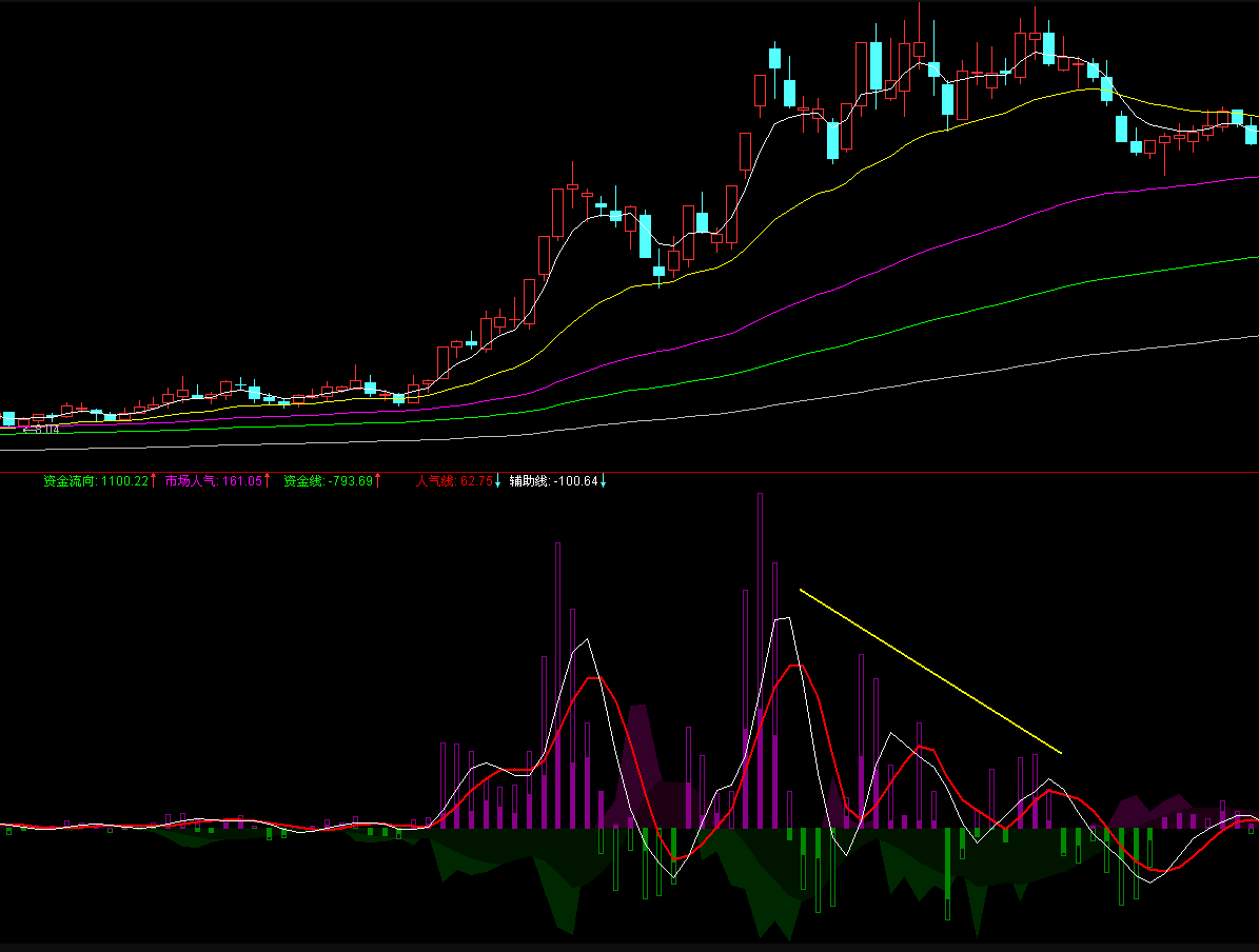 辅助线:EMA(MA(市场人气,3),3),COLORWHITE;