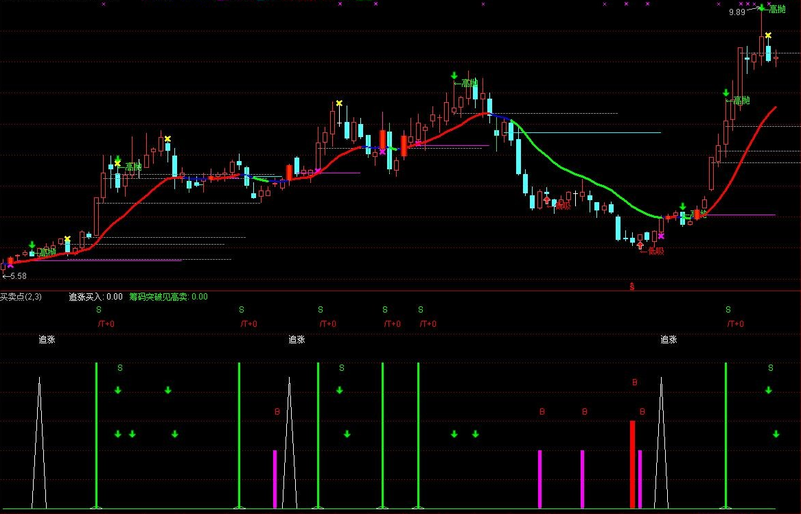 DRAWTEXT(CROSS(主筹估算,散筹估算),65,' /T+0'),COLORRED;