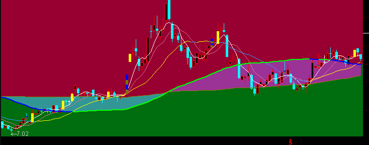 跌:IF(MA(CLOSE,20)<=REF(MA(CLOSE,20),1),MA(CLOSE,20),DRAWNULL),COLORFF9933,LINETHICK1;