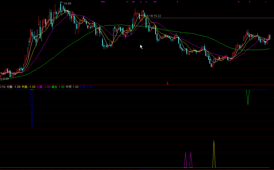 中底:IF(CROSS(-5,VAR4) AND VAR3<-0.25 AND VAR3>-0.4,-0.3,-1);