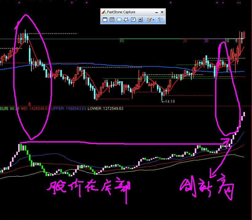 STICKLINE(OBVQ>REF(OBVQ,1),OBVQ,REF(OBVQ,1),2,0) ,COLORFF00FF;