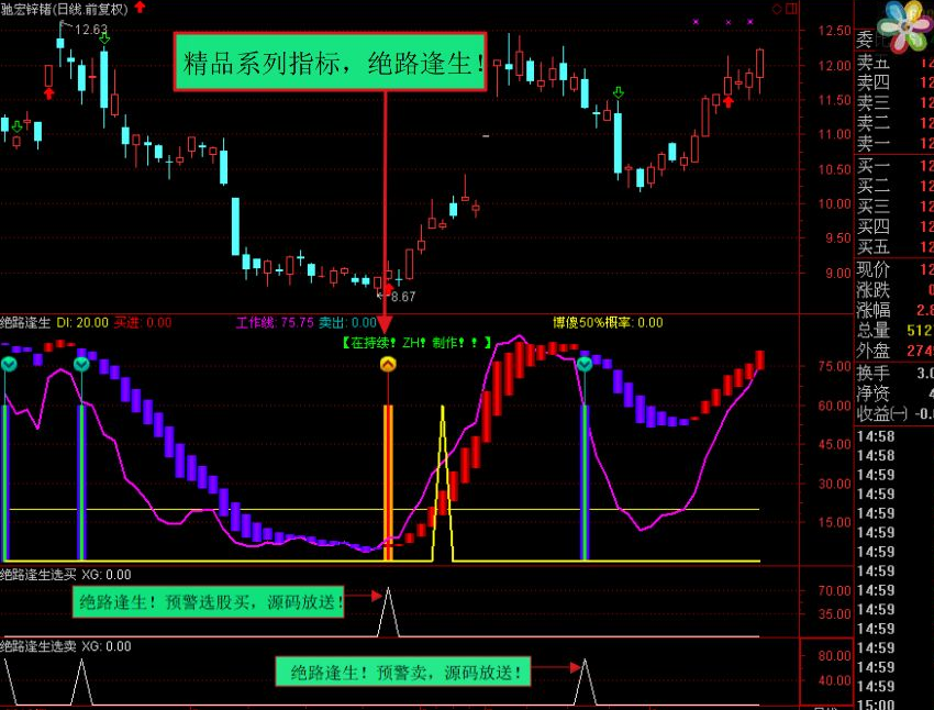 通达信精品指标系列-绝路逢生包含了二个预警 选股买和选股卖