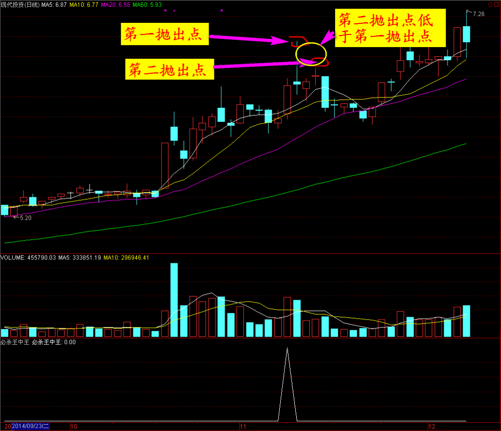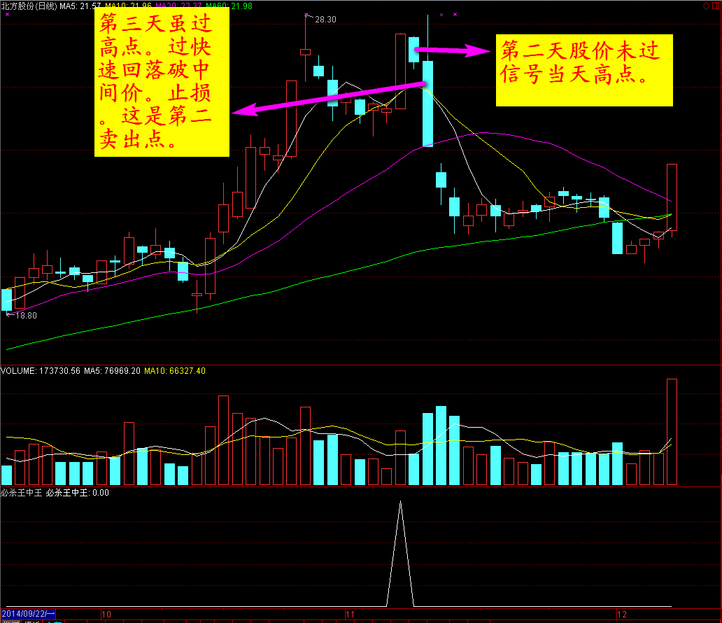 2,短线信号的出货点:结合盘中分时指标,短线的定义为3到8个点间,交易日定义为1到3个交易日,一般隔日冲高就出货。