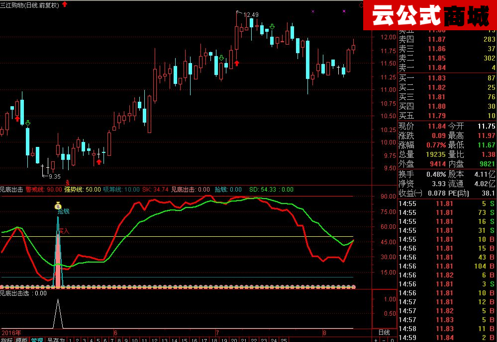 通达信精品指标公式/五里操盘/支持选股预警/金底谷底反弹牛三金