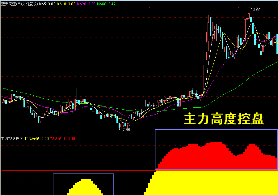 在经过无主力控盘阶段逐步出现黄色柱子,并且持续增高时则表示有主力资金开始流入,此时就说明主力已经有做多该股的动力,柱子越高也就说明资金注入随之充足。此时股价波动幅度将会逐渐加强,刻意洗盘打压行为会频繁出现。