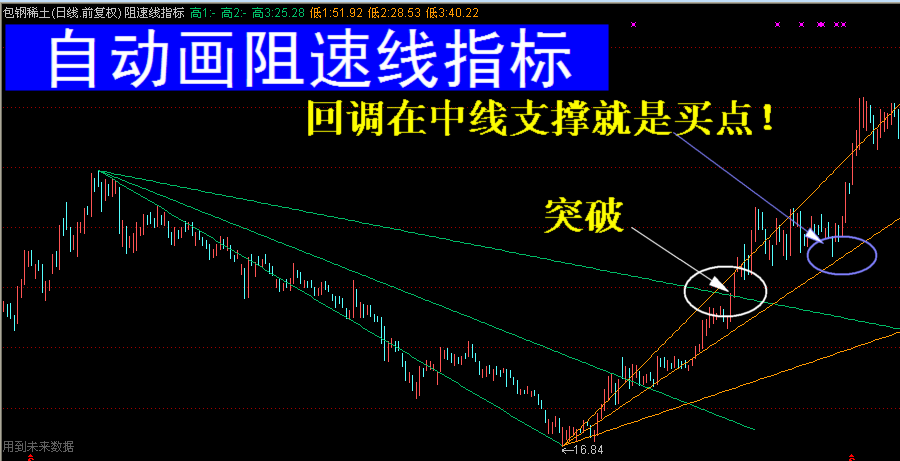 阻速线是一种将趋势线和百分比回撤融为一体的新技巧,是埃德森·古尔德开创的,实质上也属于趋势线三分法的具体应用。阻速线测绘的是趋势上升或下降的速率(或者说是趋势的速度)。