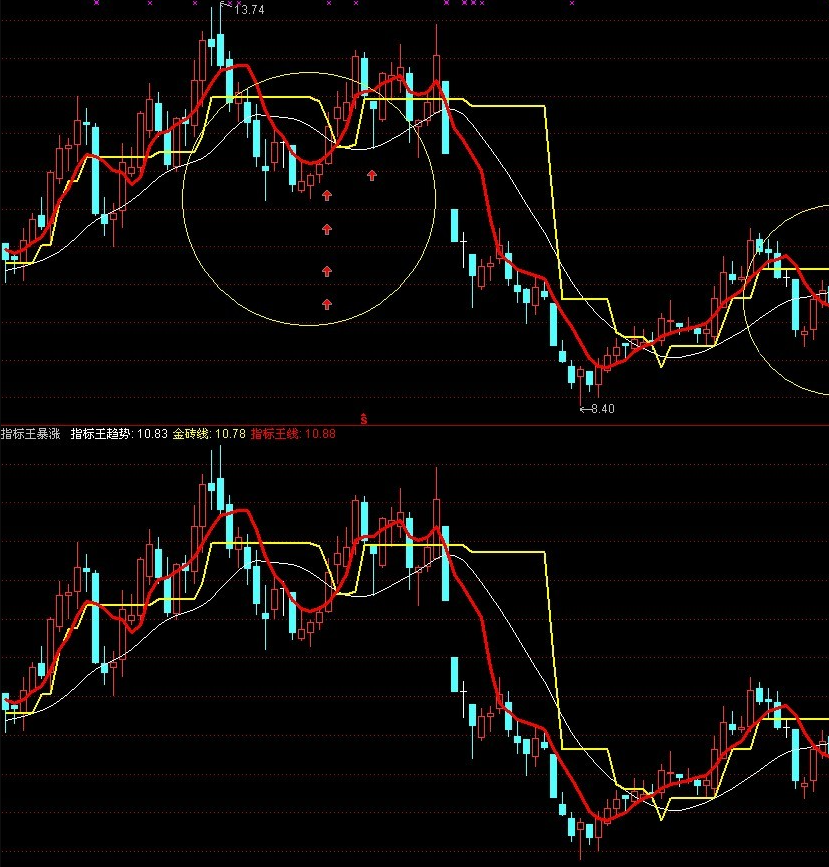 金砖线:(HHV((REF(CLOSE,1)-REF(MA(MAX(MAX((HIGH-LOW),ABS((REF(CLOSE,1)-HIGH))),ABS((REF(CLOSE,1)-LOW))),13),1)),12)),LINETHICK2,COLORYELLOW;