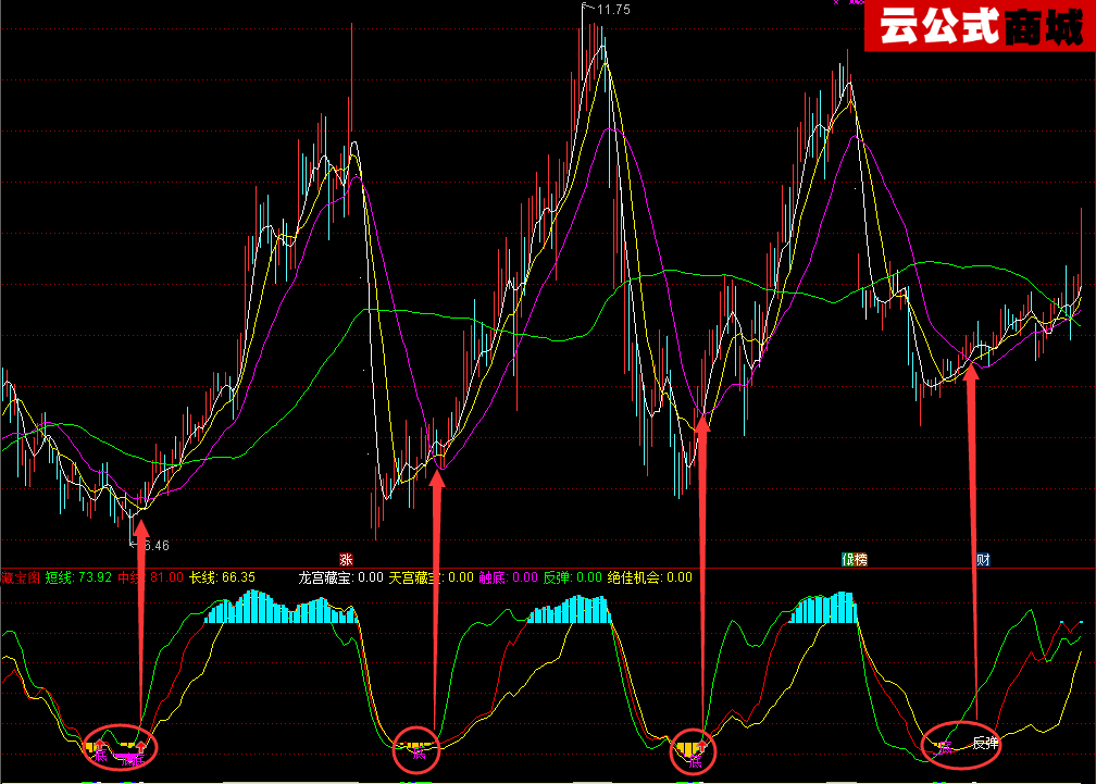 2.反弹、红色箭头和绝佳机会是买入信号;