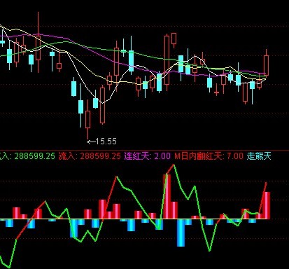 M日内翻红天:COUNT(进出量>0,M),COLORRED;