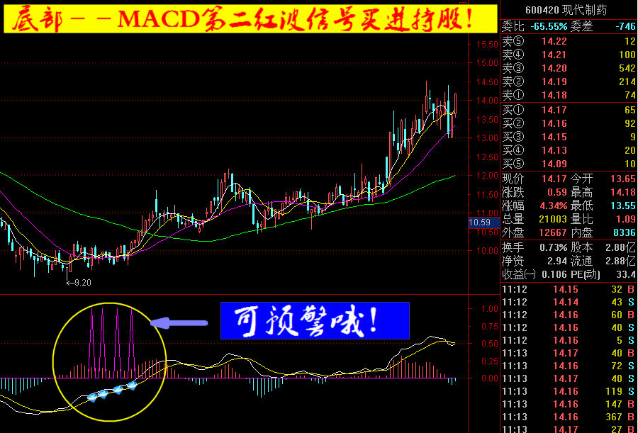 通达信股票软件指标/MACD第二红波--炒股高手参考/选股+预警