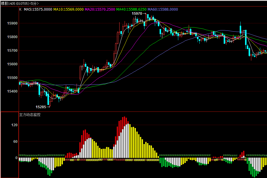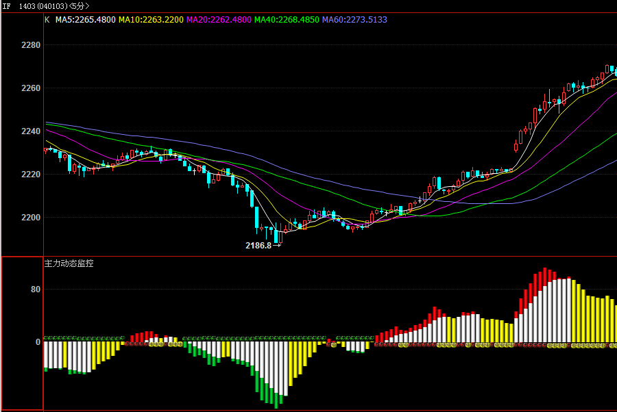【红色柱子配合红色带大字圆点】红色柱子配合红色带大字圆点,多头控盘的市场,行情一般会大幅度上涨。