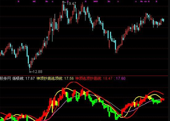 IF(SLOPE(神顶抄底逃顶线,2)>0,低吸线,C),CIRCLEDOT,COLORMAGENTA;