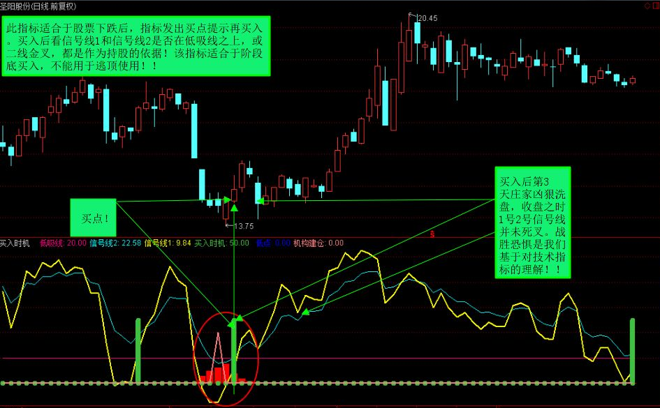 通达信金牌指标-买入时机本指标适合于阶段底买入支持选股+预警