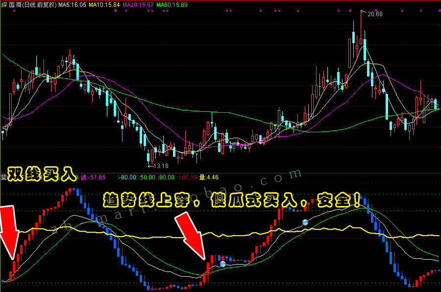 博易大师-短线无敌是通过和主图相结合由K线和趋势线组合完成的