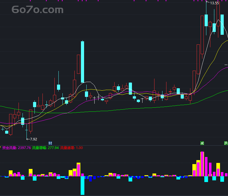 流量递增:REF(LLJX,1)>REF(LLJX,2) AND LLJX>REF(LLJX,1) AND LLJX>0,COLOR0000FF,POINTDOT;