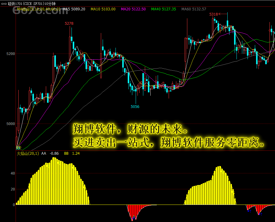 文华财经-火焰山指标结合主图均线系统进行分析设定合适的止损点