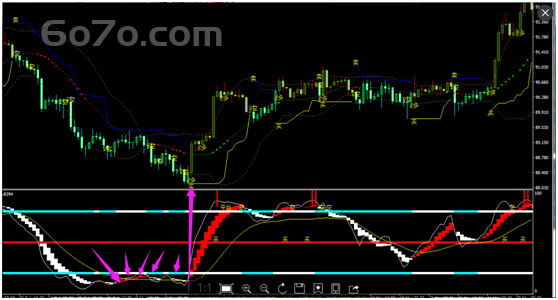 不要买的情况,如下图箭头所示,附图值靠近中间红色线的时候,利润空间就比较小,不宜下单