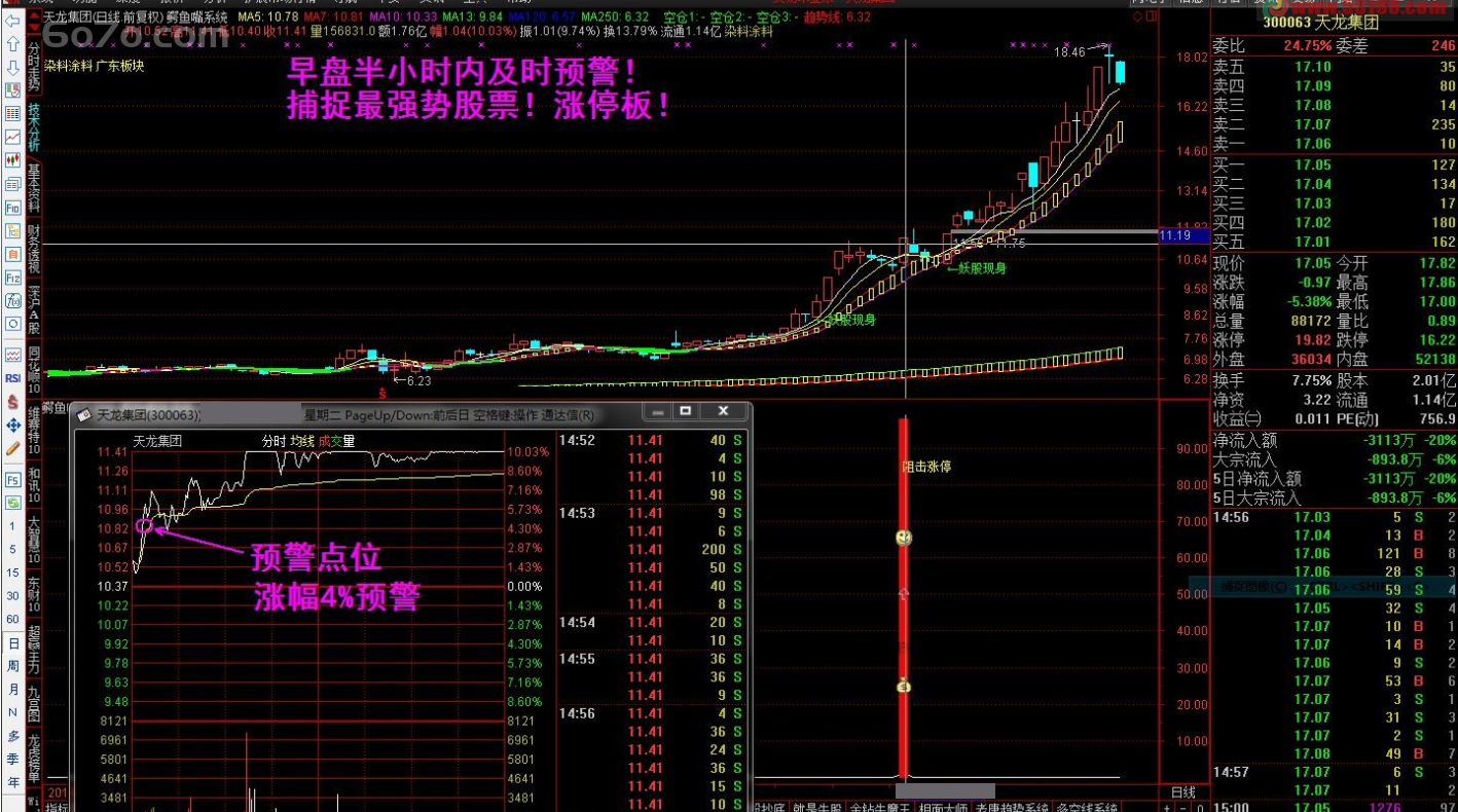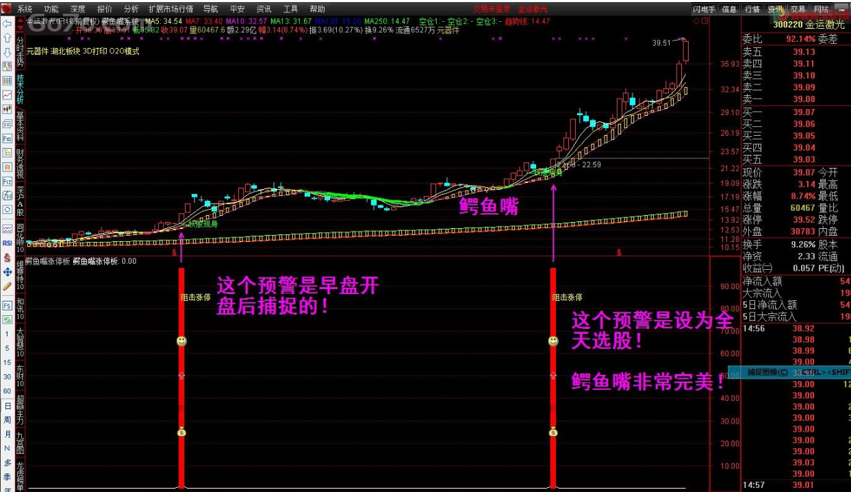 股票软件短线自动预警炒股软件通达信金螺操盘黑马涨停