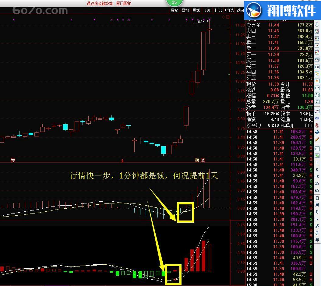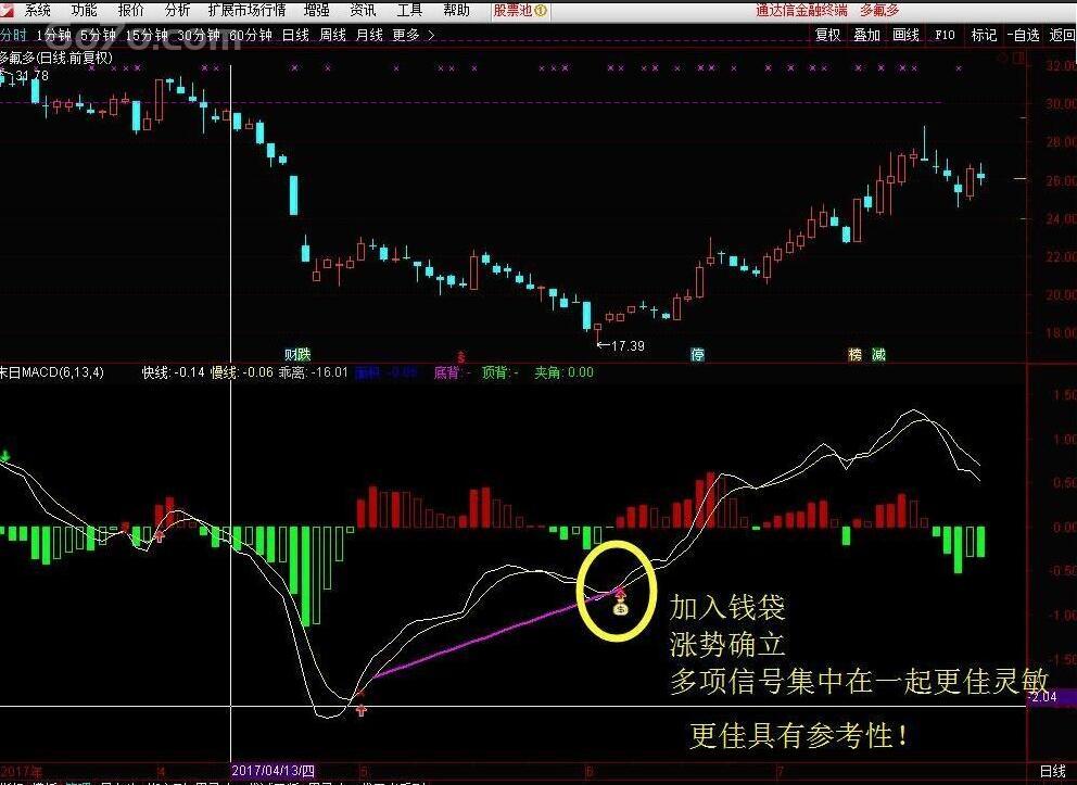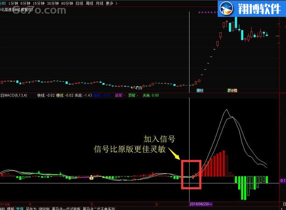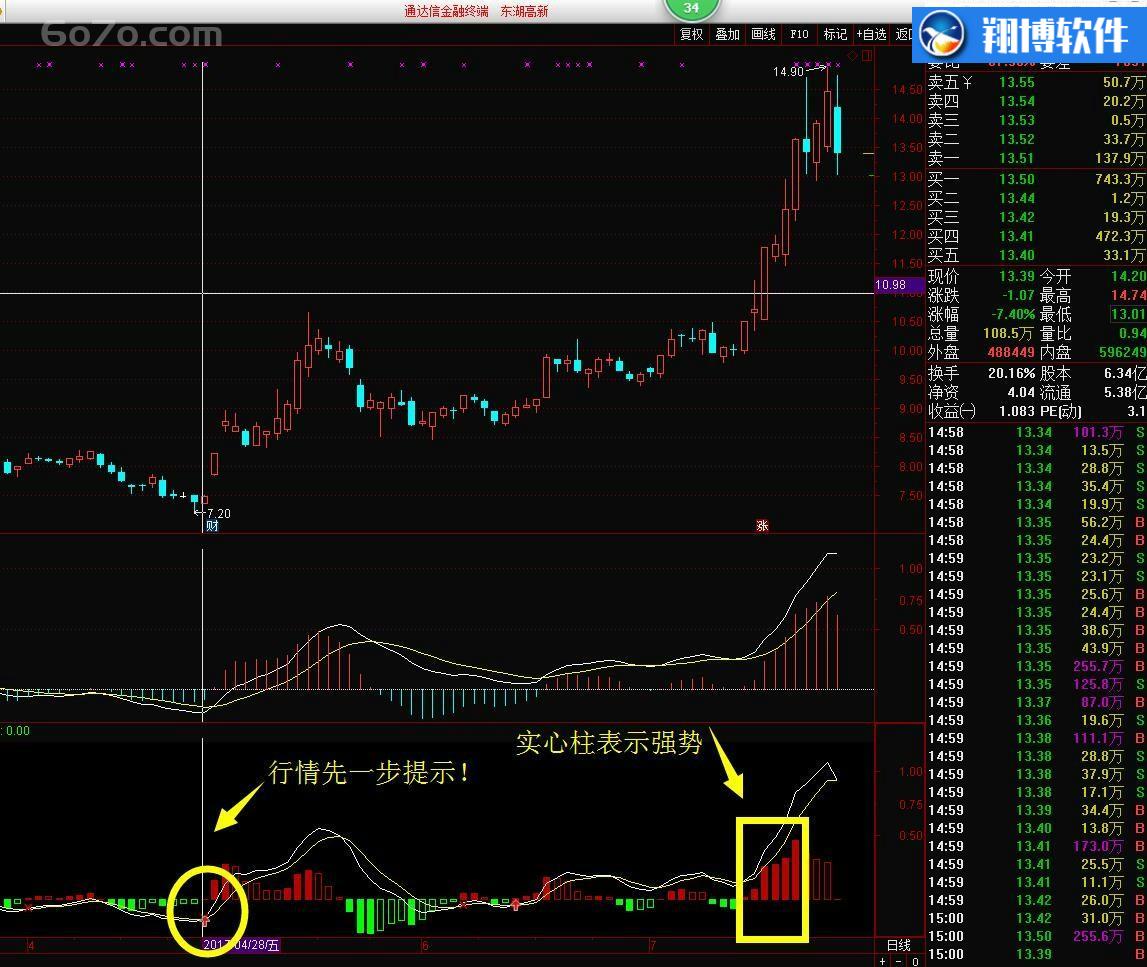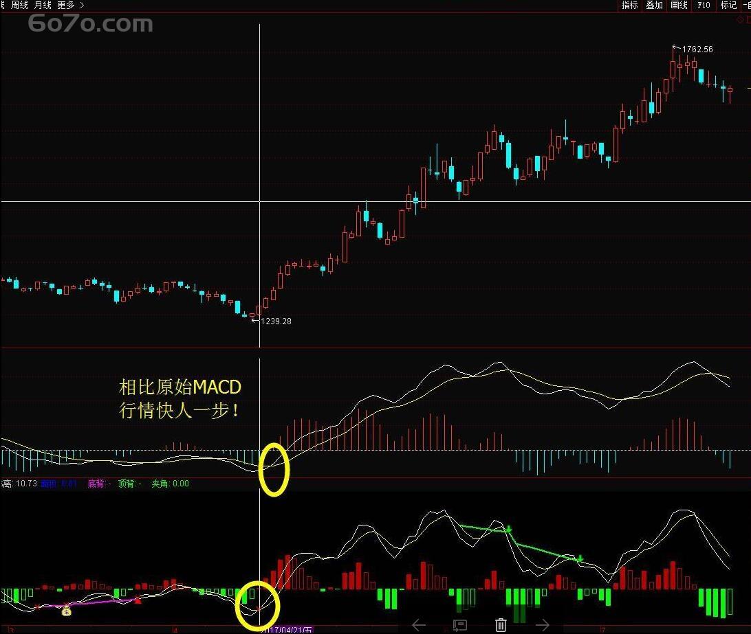 自用的MACD副图,行情提前于原版MACD,并且标注了实心空心颜色。