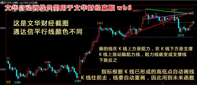 通达信文华财经赢顺wh6软件炒期货指标公式压力支撑顶底平行自动划画线