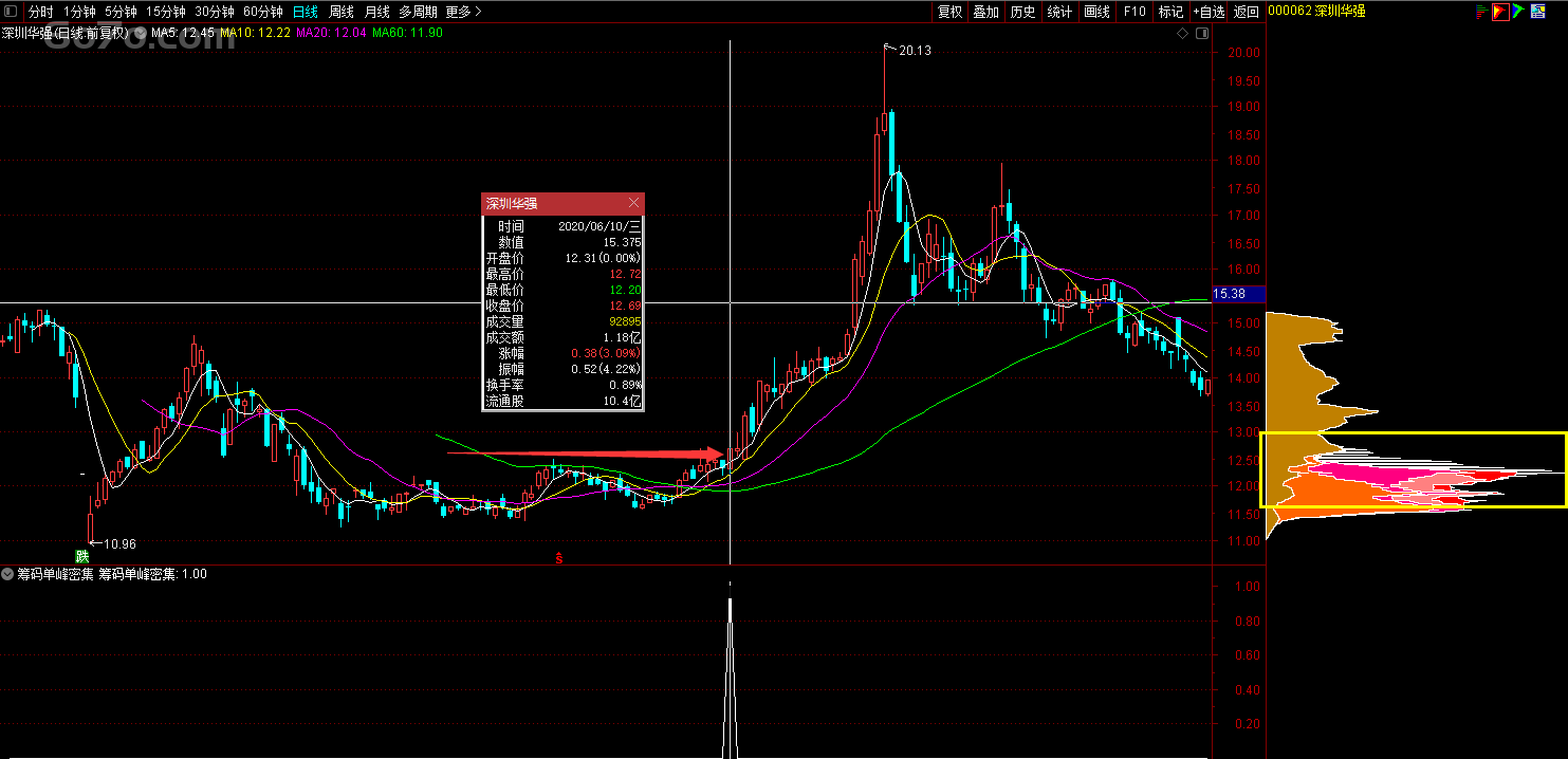 案例:2020年6月10日 深圳华强低位筹码密集后主力快速拉升