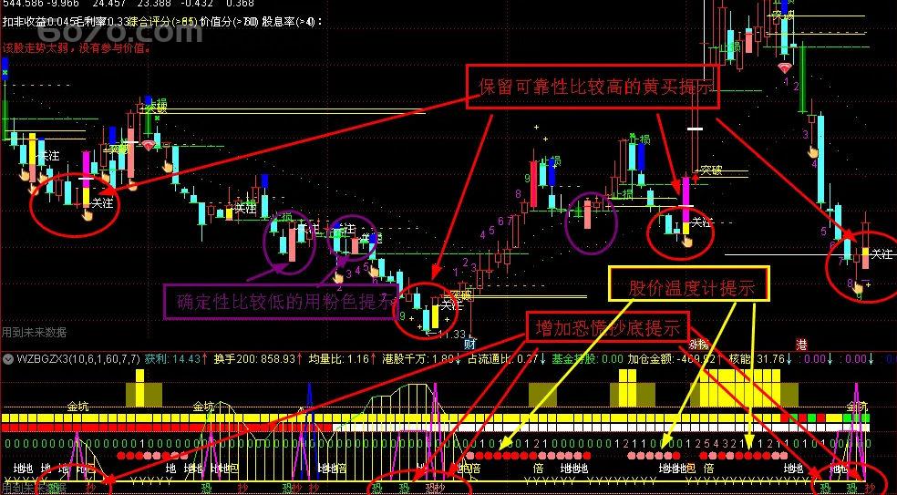 主图中的“黄买信号”进行了优化处理,将一些不太确定的提示改为粉色信号,保留了确定性较高的黄色买入提示。这样一来,您可以更清晰地判断买卖点位,减少误判概率。