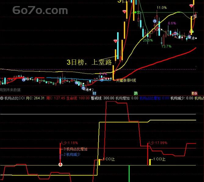 机构筹码集中度:红色线,反映机构筹码的集中度。