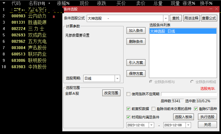 每天开盘前运行一次选股,找出符合条件的个股,重点关注! - 结合其他分析