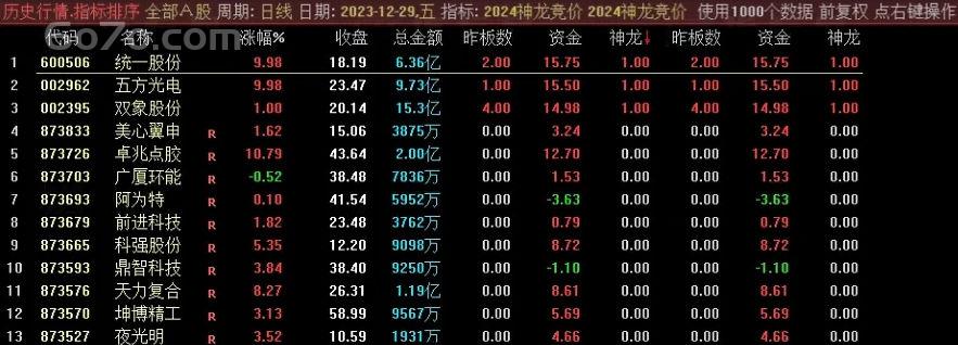 - 9点25分刷新数据,先看神龙数据值是1的,再看资金值,越大越好;