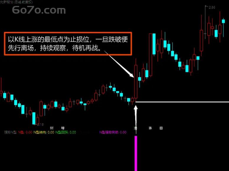 设定止损位:以 K 线上涨的最低点为止损线,一旦跌破就先离场,然后持续观察,等机会再战。就像打仗,打不过咱先撤,保存实力。