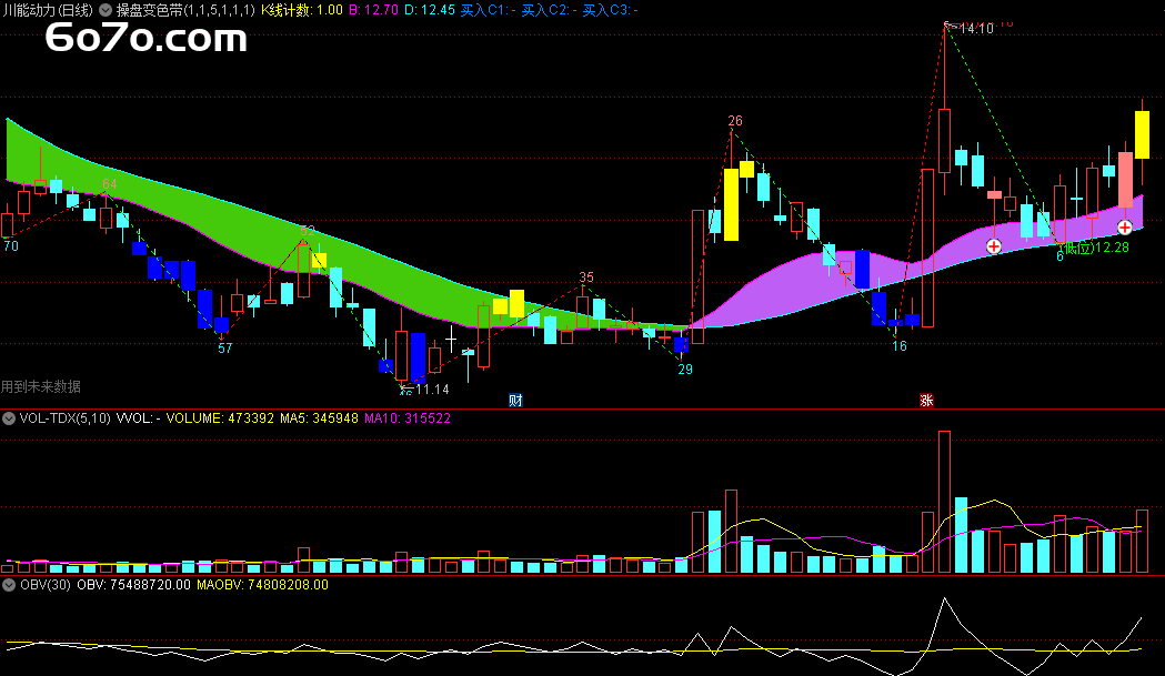 下面我就把这个通达信可用的操盘变色带主图指标源码分享给大家: