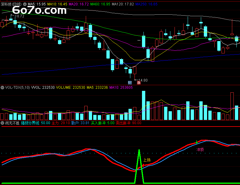 信号判断:指标通过对多种技术参数的综合分析,如成交量、股价走势、均线等,来判断股票的买卖信号。当这些参数达到特定的条件时,就会发出买入或卖出信号。