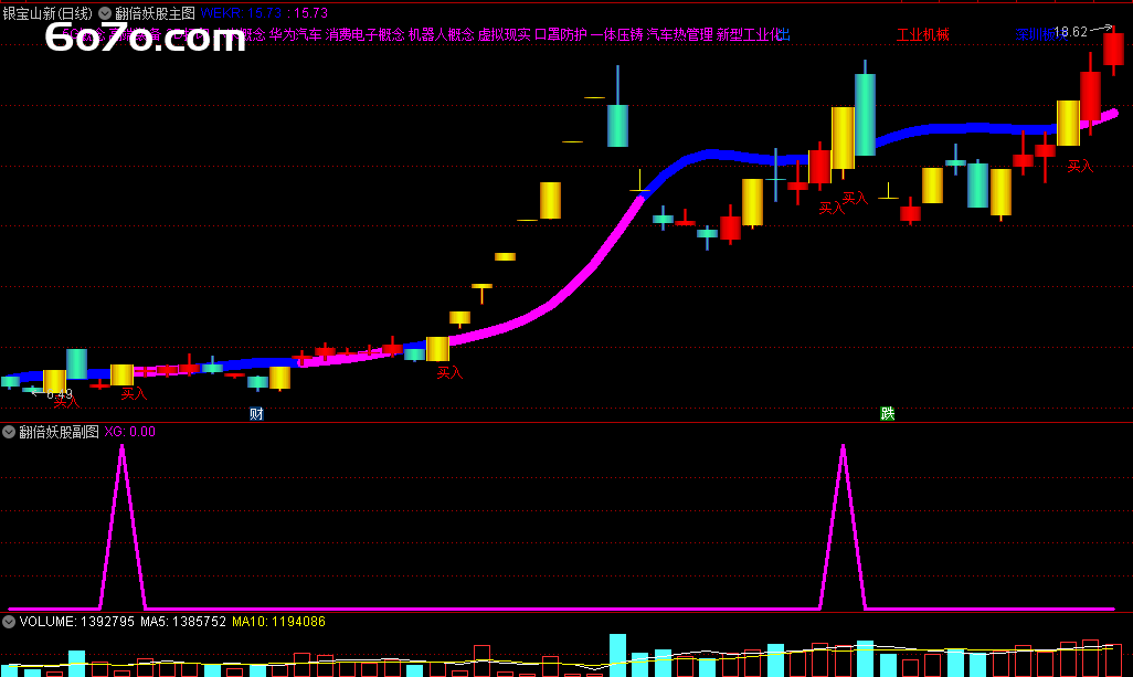 XG:A1 AND A2; 当这两个条件同时满足时,就选出了符合条件的股票,也就是我们寻找的可能成为翻倍妖股的潜力股。