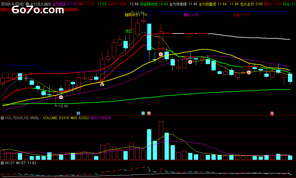 高度控盘:IF(VAR2>50 AND COST(85)<CLOSE,控盘,0),COLORFF00FF; //紫色标记绝对控盘