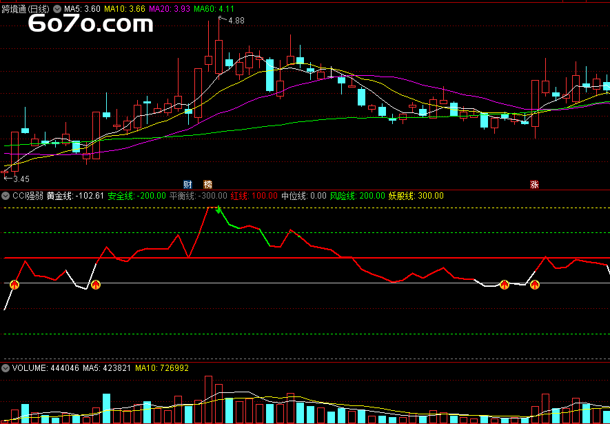 - CCI指标:CCI(Commodity Channel Index)是一种动量指标,用于衡量价格的波动幅度。当CCI上穿100时,表示市场进入强势区域,主升浪可能开启;当CCI下穿-100时,表示市场进入弱势区域,可能是卖出信号。
