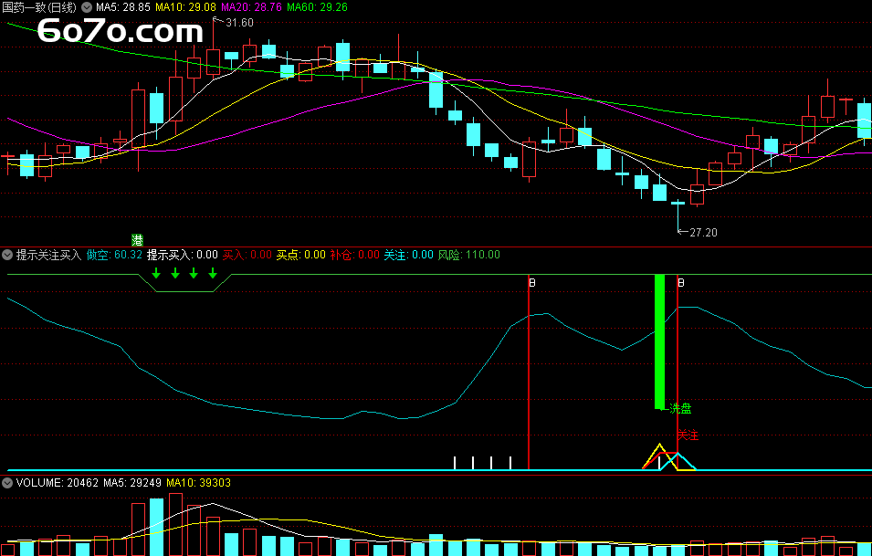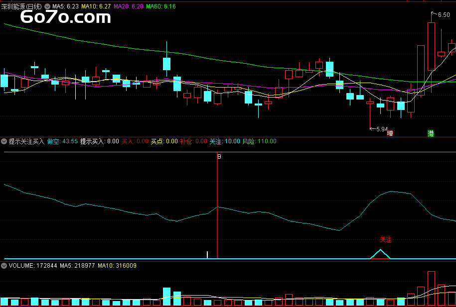 就在这时,他遇到了一位炒股多年的老张。老张看着小李这么惨兮兮的样子,心生怜悯,决定拉他一把。老张说:“小伙子,炒股可不能这么盲目跟风,得有点自己的‘武器’。” 于是,老张就把这个通达信〖提示关注买入〗副图指标毫无保留地传授给了小李。